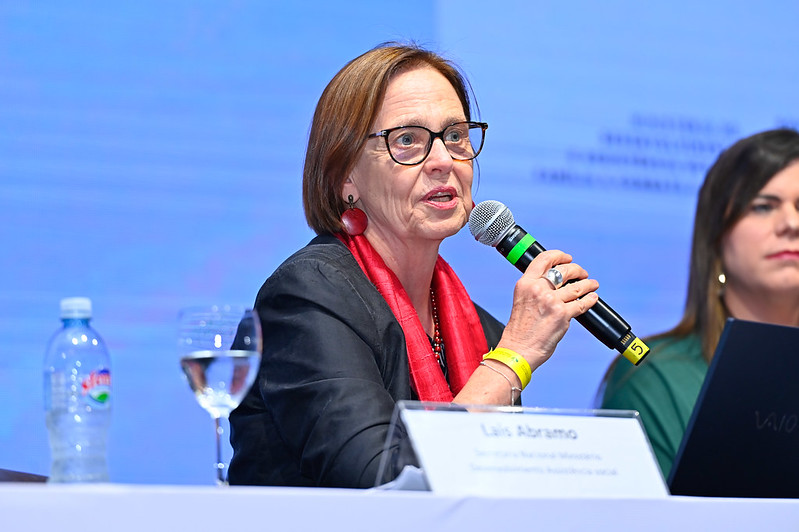 O direito ao cuidado foi o tema escolhido pela socióloga Laís Abramo em sua participação. ‘Sem que haja uma transformação profunda da atual organização social dos cuidados do país, não vamos conseguir atingir a igualdade de gênero, de raça e de classe no mundo do trabalho’, ressaltou. Abramo abordou, em especial, a construção da Política Nacional de Cuidados no Brasil e a igualdade no mundo do trabalho. ‘Precisamos transformar uma sociedade de mulheres – especialmente pobres, negras, indígenas e periféricas – sobrecarregadas pelo trabalho de cuidados, em uma sociedade dos cuidados que tenha no centro a sustentabilidade da vida das pessoas e do planeta’.